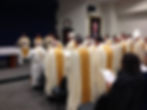 Retreat Master, Reverend Dwight D. Schlaline, with members of the Retreat committee in the Immaculate Conception Chapel at Mount St. Mary's University in Emmitsburg, MD.