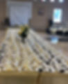 When done, Mark surveyed the room full of bags and jokingly remarked, "Are there any coats left in Middletown?".